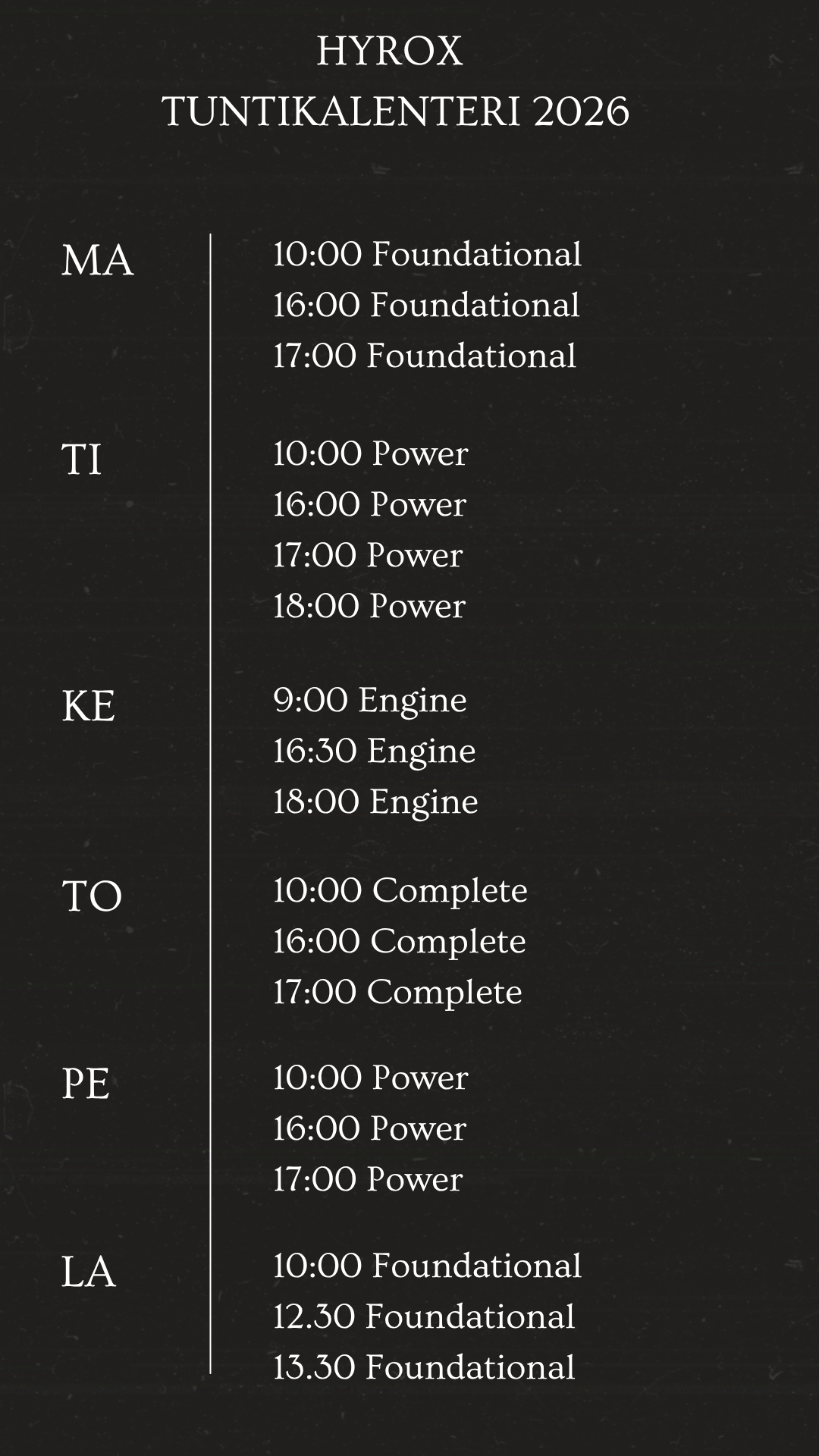 Seuraava Hyrox Startti järjestetään 12.4.2026. Varaa oma paikkasi tästä.